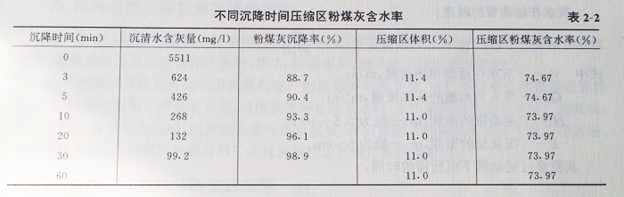 (1)北京熱電廠粉煤灰懸浮液沉降特性見(jiàn)表2-1。