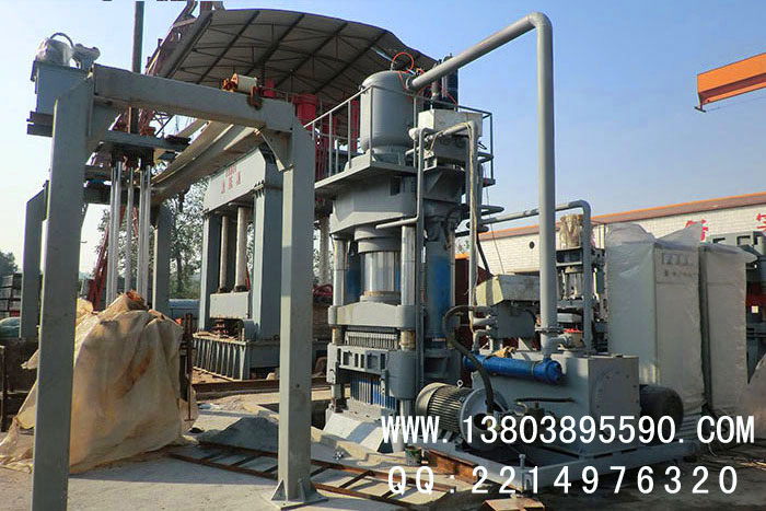 原料處理完之后,料箱里的物料經(jīng)過(guò)推拉缸的作用在主機(jī)??蚶飦?lái)回移動(dòng),提高物料的均勻度,由主機(jī)高壓壓制成型,成型后由機(jī)械手直接碼垛至蒸養(yǎng)小車(chē)。